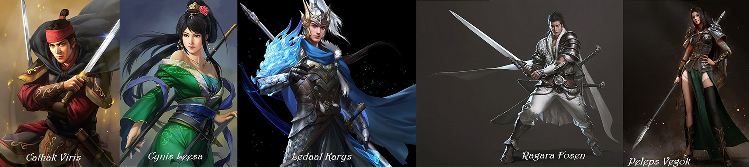 - Cathak Viris: homme sang-dragon du feu, banni de l'île bénie suite à une affaire de corruption (et de meurtres de patriciens) dévoilée par la Magistrate Ledaal Alona. Il exerçait dans la cité de Noble dans la Préfecture d'Incas. Identité prise par Kuja Nera